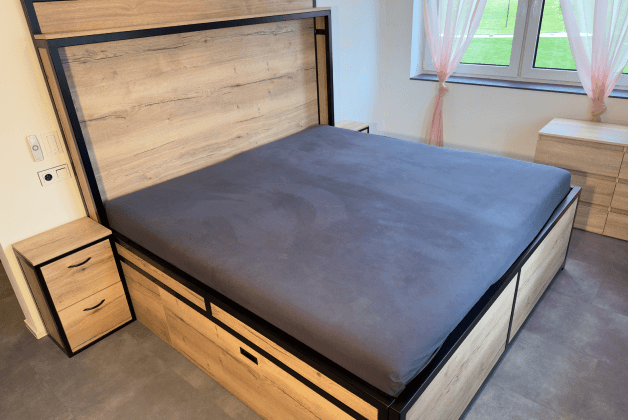 Výrobky z vysoce kvalitních materiálu, jako je masivní dřevo, kov nebo exkluzivní kombinace těchto prvků.