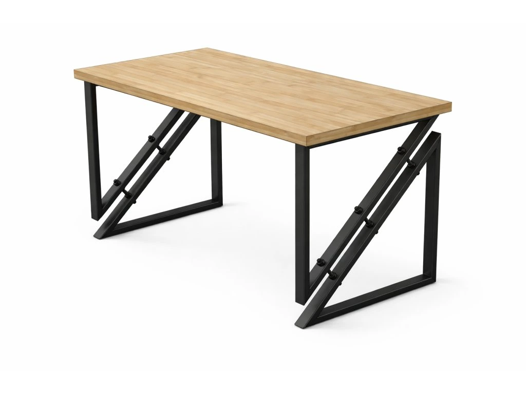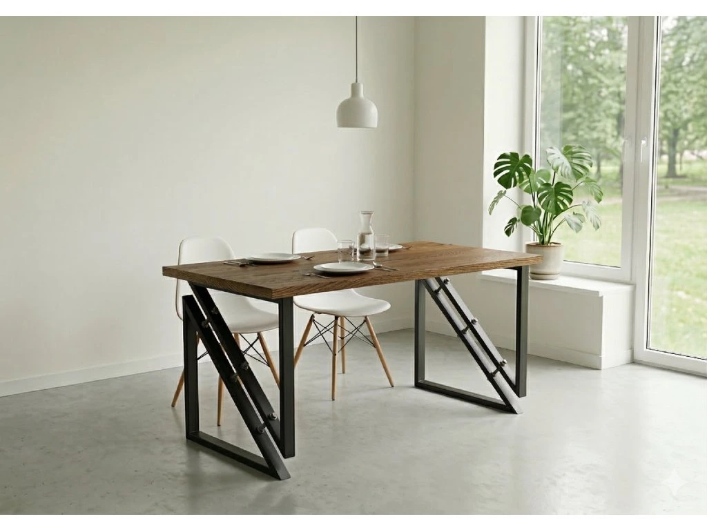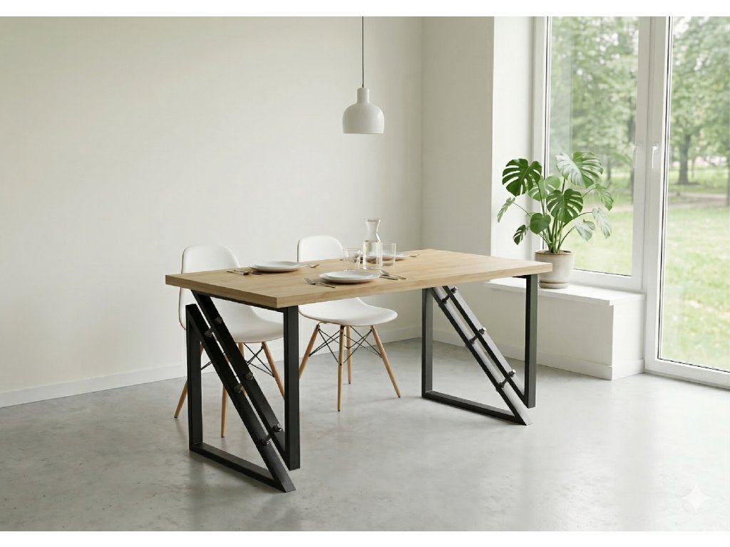 Tento stůl rozhodně není pro každého, ale ti, kdo mají vkus pro neotřelý design, si ho zamilují. Dva díly tvaru trojúhelníku jsou sešroubovány závitovými tyčemi, což mu dodává osobitý a výrazný charakter. Tento industriálně laděný prvek přináší nejen funkčnost, ale také nevšední estetiku, která oživí každý interiér. Pro milovníky jedinečných kousků je tento stůl opravdovým designovým skvostem.