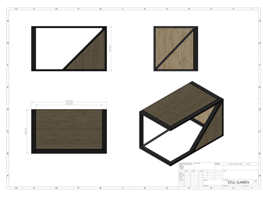 Tento pracovní stůl vyniká kombinací dřevěných desek a kovové konstrukce, která vytváří harmonický a moderní vzhled. Desky jsou elegantně zasazeny do konstrukce, což podtrhuje čistý a sjednocený design. Je ideální volbou pro ty, kteří chtějí ve svém pracovním prostředí propojit styl s funkčností.