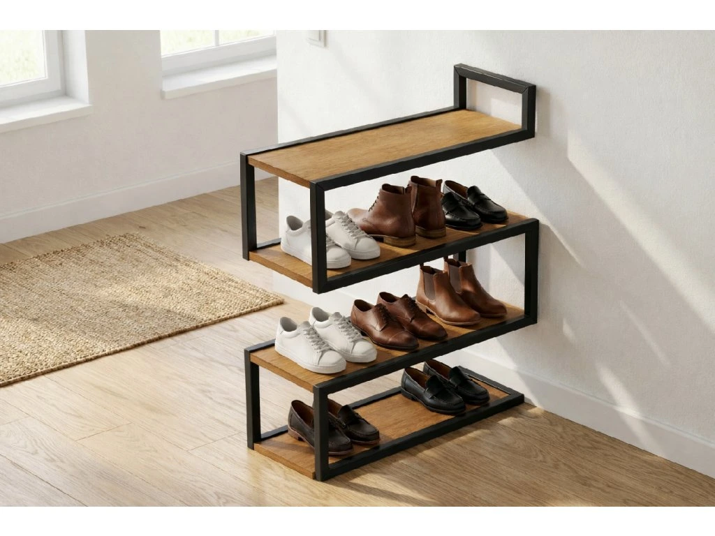 Tento botník se vyznačuje neotřelým designem, který zaujme na první pohled, a zároveň je velmi praktický. Díky čtyřem prostorným patrům nabízí dostatek místa pro uložení obuvi. Pevná konstrukce zajišťuje potřebnou stabilitu. Botník je navržen tak, aby nejen plnil svou funkci, ale také stylově doplnil interiér. Je ideální do vstupní haly, předsíně i ložnice.