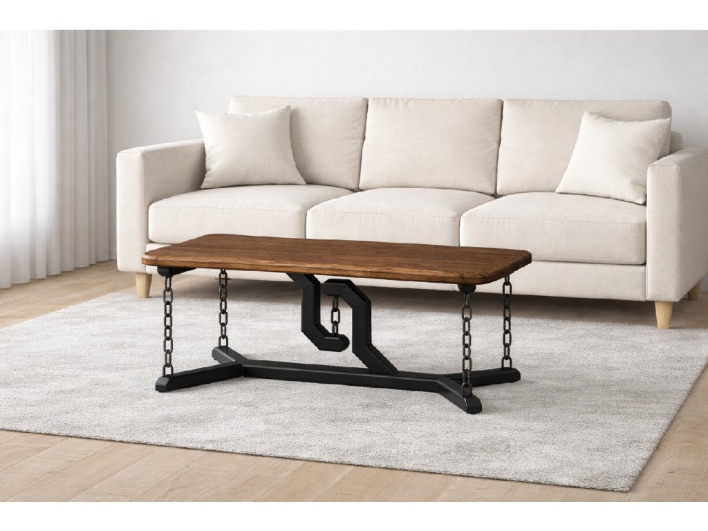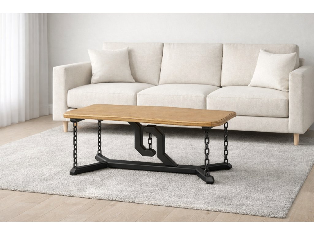 Představujeme stůl, který se odlišuje od konvenčního nábytku a přináší do interiéru prvek originality. Namísto tradičních noh je vybaven unikátním prvkem – řetězy. Jejich jemně zahnuté tvary a otevřená konstrukce dodávají stolu lehkost a vzdušnost a zároveň vytvářejí výrazný vizuální efekt. Každý detail je pečlivě promyšlen tak, aby byla zachována stabilita a zároveň vynikl jeho jedinečný vzhled.
